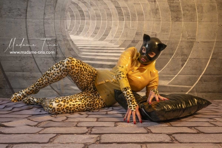 Latex leggings with leopard fur pattern